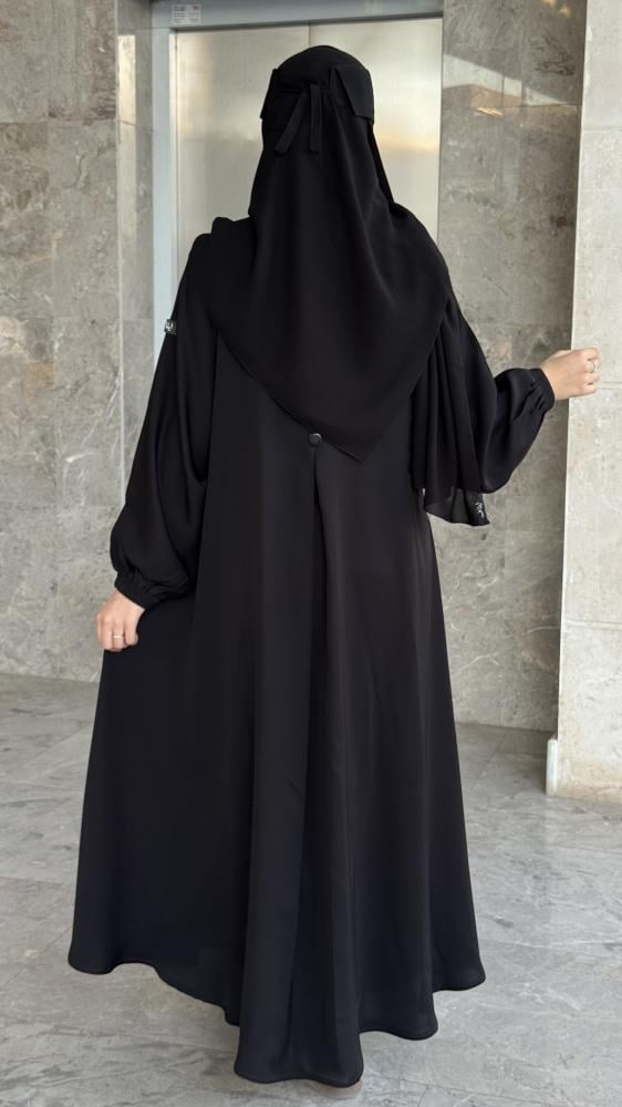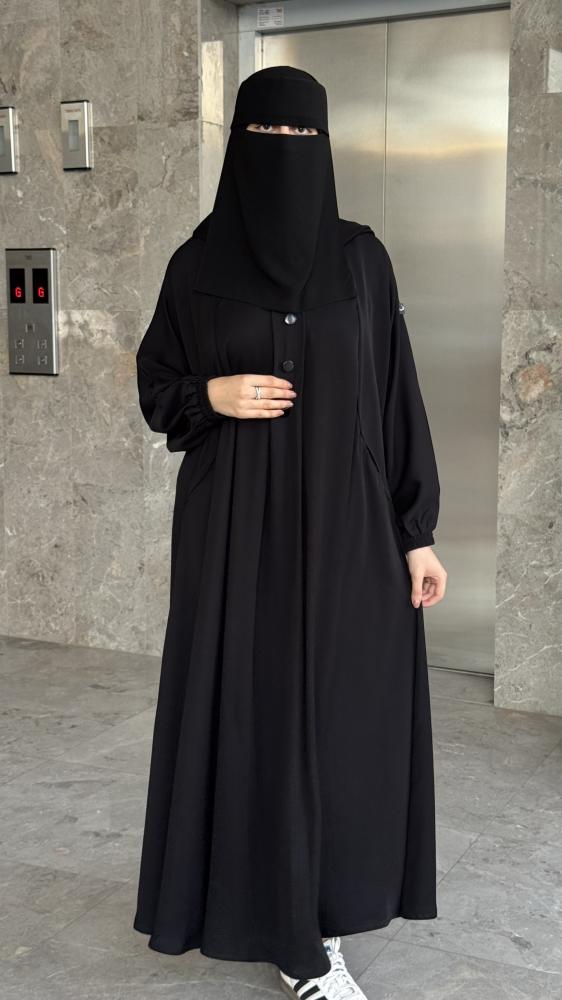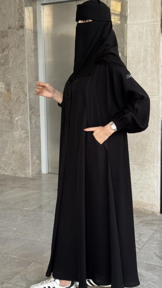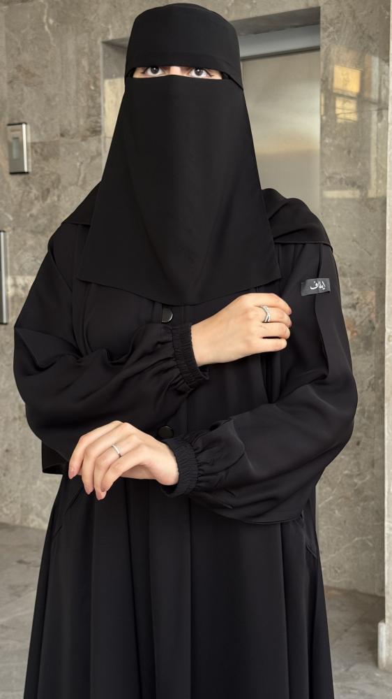 - طول العباية يؤخذ من الكتف الى أسفل الكعبين (من الأمام)